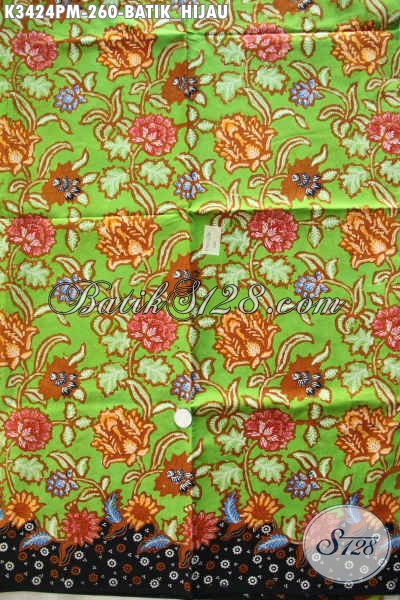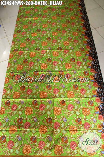 Kain Batik Hijau Motif Bunga, Batik Kain Istimewa Proses Kombinasi Tulis, Pas Banget Untuk Busana Kerja Wanita Karir [K3424PM-240x110cm]