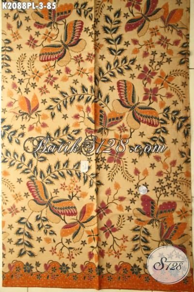 Kain Batik Jawa Tengah Halus Motif Bunga Dan Kupu, Batik Trendy Bahan Busana Elegan Wanita Muda Dan Dewasa Proses Print Lasem [K2088PL-240 x 105cm]