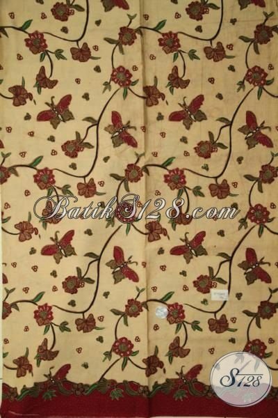 Kain Batik Kombinasi Tulis Motif Kupu-Kupu, Batik Warna Kombinasi Cream Dan Merah, Modis Untuk Blus Keren Buat Dress [K1912BT-240 X 110 cm]