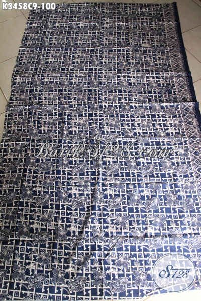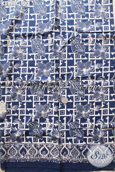 Kain Batik Kwalitas Istimewa Warna Biru Motif Bunga Bahan Aneka Busana Nan Trendy Dan Berkelas, Batik Solo Jenis Cap Mewah Dengan Harga Murah [K3458C-200x110cm]