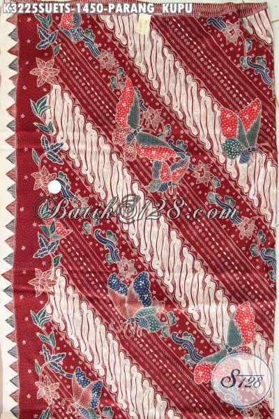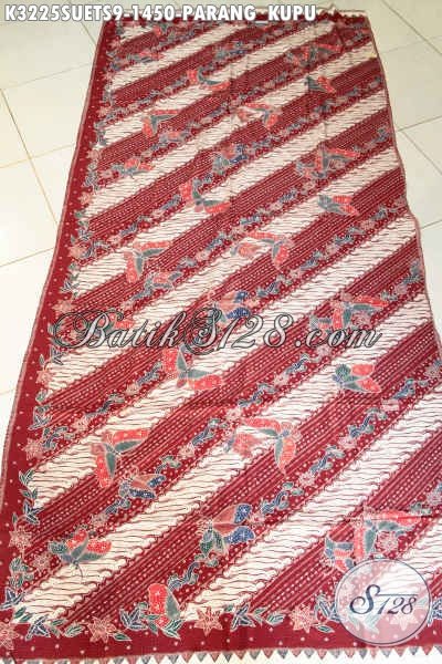 Kain Batik Modern Klasik Warna Merah Bahan Sutra Crepe, Batik Premium Cocok Untuk Kemeja Pria Pejabat Dan Executive Harga 1 Jutaan Proses Tulis Soga [K3225SUETS-240cmx110cm]