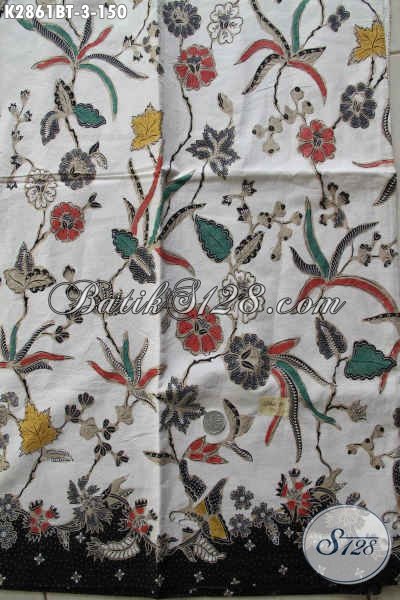 Kain Batik Motif Bunga, Batik Halus Kombinasi Tulis Kwalitas Bagus Buatan Solo Asli Cocok Untuk Busana Wanita [K2861BT-240x110cm]