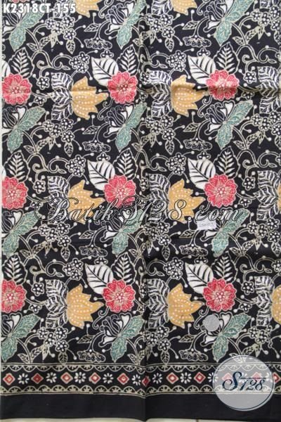 Kain Batik Motif Bunga Dasar Hitam Proses Cap Tulis, Kain Batik Istimewa Bahan Blus Cocok Untuk Wanita Bisa Tampil Lebih Bergaya [K2318CT-200x110cm]