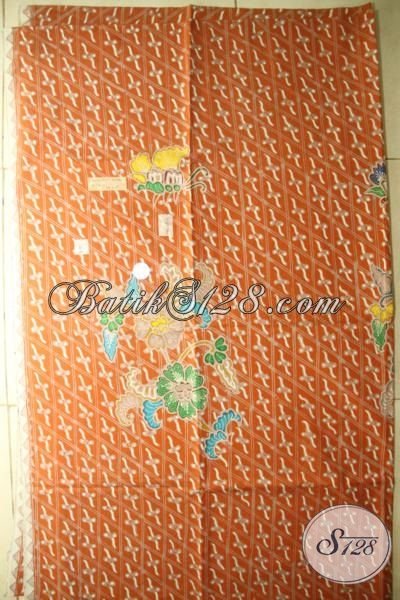Kain Batik Premium Warna Orange Halus Dan Adem, Batik Tulis Buatan Solo Mewah Cocok Untuk Bahan Baju Keren Dan Elegant [K1751TMH]