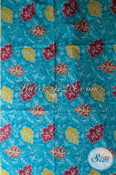 Kain Batik Print Motif Daun Dasar Biru Trend Motif Batik Terkini, Batik Solo TerbaruĀ Lebih Trendy Dan Modis Untuk Busana Kerja [K1561P]