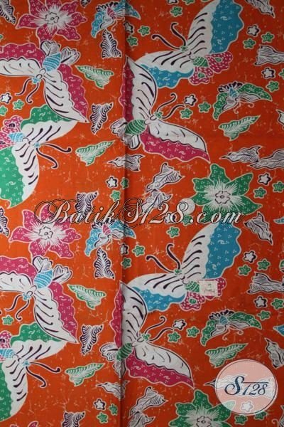 Kain batik Print Warna Orange Dengan Motif Kupu-Kupu, Batik Murah Meriah Dengan Kwalitas Bagus Dan Halus [K1662P]
