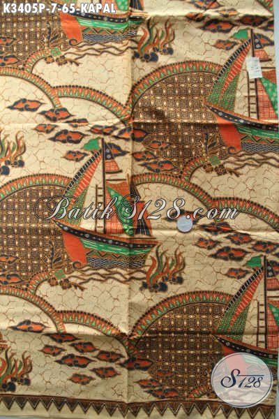 Kain Batik Printing Warna Elegan Motif Kapal, Batik Halus Tren Masa Kini Cocok Untuk Kemeja Lengan Pendek Cowok [K3405P-200x110cm]
