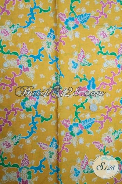 Kain Batik Solo Bagus Halus Dengan Dasar Kuning Dan Motif Bunga Yang Trendy, Batik Bahan Dress Keren Harga Murah [K1499P]