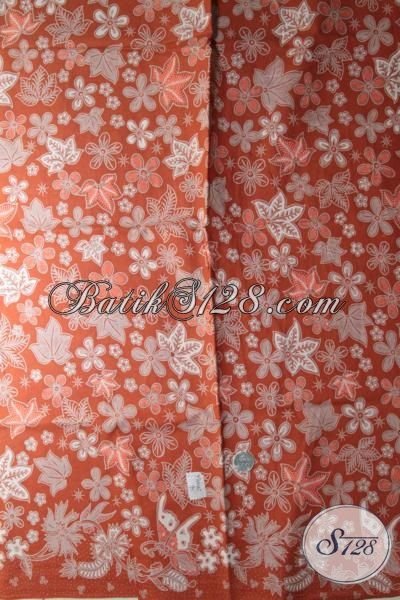 Kain Batik Solo Kombinasi Tulis Motif Trendy, Batik Bunga Warna Orange Cocok Untuk Busana Blus Kerja Dan Gaun Pesta [K1884BT-240 x 110 cm]