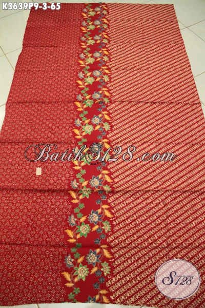 Kain Batik Solo Merah Motif Modern Bahan Baju Atasan Wanita Motif Bunga Proses Printing, Batik Halus Nan Istimewa Hanya 60 Ribuan Saja [K3639P-200x110cm]