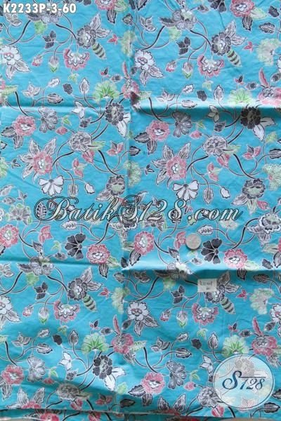 Kain Batik Solo Warna Biru Muda Berpadu Motif Bunga Yang Keren Cocok Banget Untuk Bahan Busana Blus Maupun Dress [K2233P-200 x 110 cm]