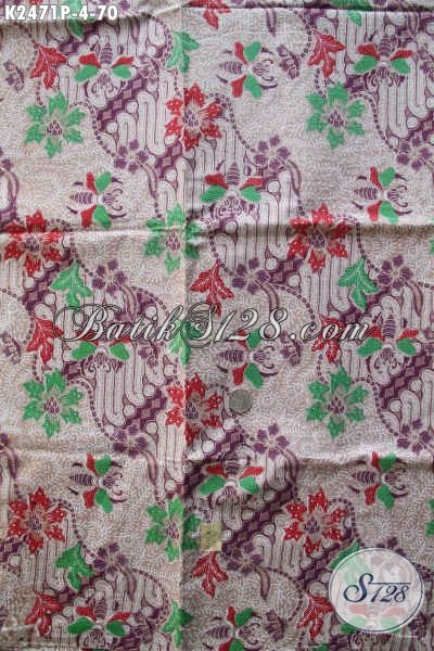 Kain Batik Untuk Baju Lengan Panjang Dan Pendek, Batik Solo Printing Berbahan Halus Kwalitas Istimewa Dasar Ungu Motif Bunga Harga 70K [K2471P-240x105cm]