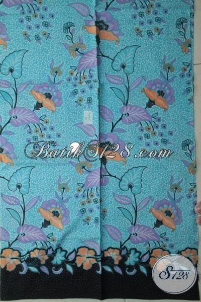 Kain Batik Warna Biru Muda Berpadu Motif Bunga Modern Banget, Cocok Untuk Bahan Busana Cewek Baik Dress Maupun Blus Kerja [K1815P-200x105cm]