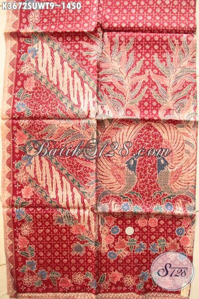 Kain Batik Warna Merah Motif Bagus Jenis Tulis Sutra Twis Buatan Solo, Batik Premium Bahan Busana Istimewa Dan Berkelas Cocok Untuk Baju Resmi Maupun Santai [K3672SUWT-240x105cm]