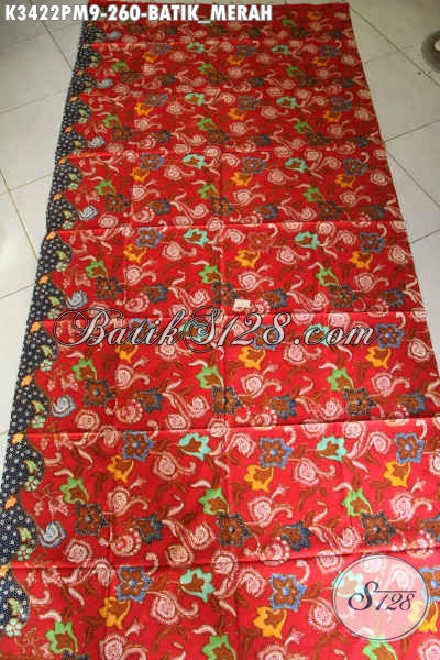 Kain Batik Warna Merah Nan Mewah, Batik Kain Solo Halus Motif Terkini Proses Kombinasi Tulis, Bahan Pakaian Santai Dan Resmi Untuk Penampilan Nan Sempurna [K3422PM-240x110cm]
