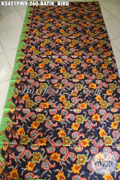 Kain Batk Biru Motif Bunga, Batik Halus Kombinasi Tulis Kwalitas Premium Asli Buatan Solo, Cocok Banget Untuk Pakaian Wanita [K3421PM-240x110cm]