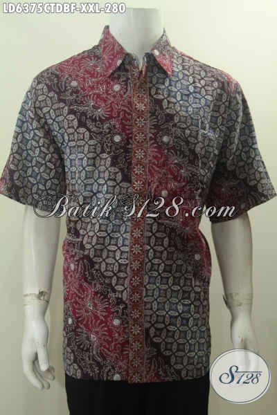 Kemeja Batik 3L Berbahan Adem Kain Doby Model Lengan Pendek Pakai Furing, Baju Batik Istimewa Buatan Solo Motif Mewah Harga 280K Istimewa Untuk Pria Berbadan Gemuk [LD6375CTDBF-XXL]