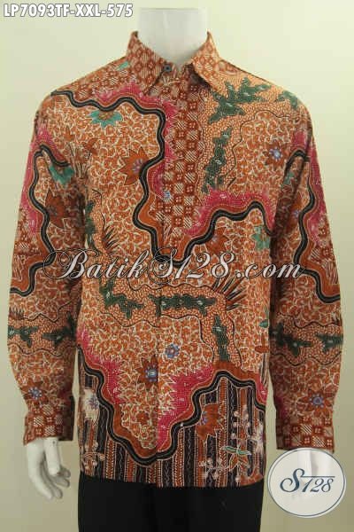 Kemeja Batik 3L, Hem Batik Halus Mewah Mahal Untuk Pria Gemuk, Bahan Adem Motif Tulis Tangan Model Lengan Panjang Full Furing Yang Nyaman Di Pakai [LP7093TF-XXL]