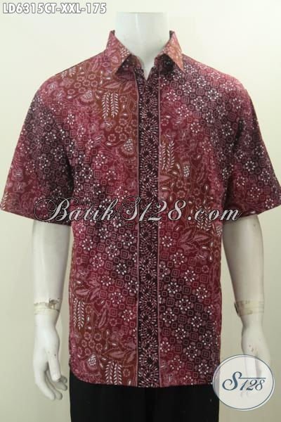 Kemeja Batik 3L Model Lengan Pendek, Hem Batik Halus Proses Cap Tulis Motif Istimewa Asli Buatan Solo Spesial Buat Lelaki Gemuk Tampil Modis Dan Elegan [LD6315CT-XXL]