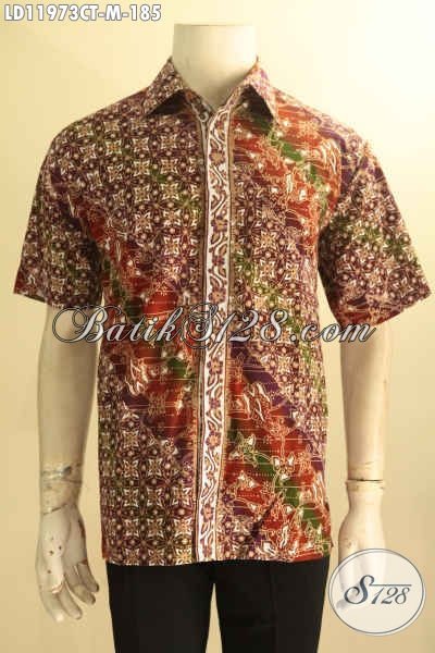 Kemeja Batik Bagus Jenis Cap Tulis, Hem Batik Lengan Pendek Nan Istimewa Warna Berkelas Berpadu Motif Elegan, Pilihan Tepat Untuk Kerja Dan Acara Resmi [LD11973CT-M]