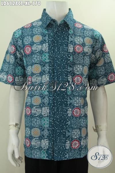 Kemeja Batik Biru Motif Unik Dan Trendy, Baju Batik Pria Lengan Pendek Cap Tulis Asli Buatan Solo Yang Mampu Bikin Penampilan Lebih Gagah Dan Keren [LD6128CT-XL]