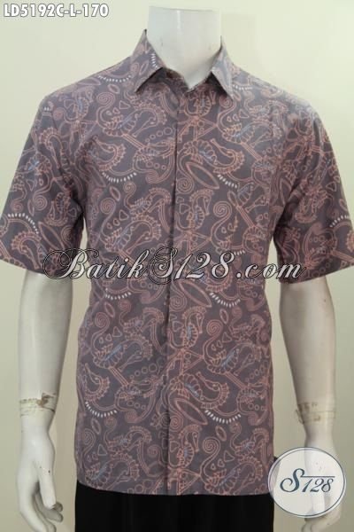 Kemeja Batik Coklat Size L Model Lengan Pendek, Baju Batik Pria Masa Kini Dengan Motif Bagus Proses Cap Tampil Modis Dan Menawan [LD5192C-L]
