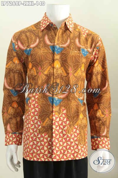 Kemeja Batik Elegan Kwalitas Bagus Model Lengan Panjang, Baju Batik Solo Istimewa Untuk Pria Tampil Gagah Dan Tampan [LP7268P-L , XXL]