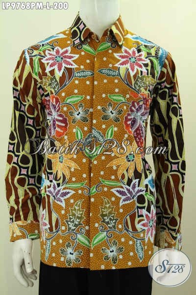 Kemeja Batik ELegan Mewah Motif Kombinasi, Baju Batik Modern Klasik Proses Kombinasi Tulis Bahan Adem Dan Tidak Luntur Model Lengan Panjang Harga 200K [LP9768PM-L]