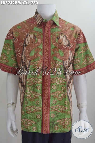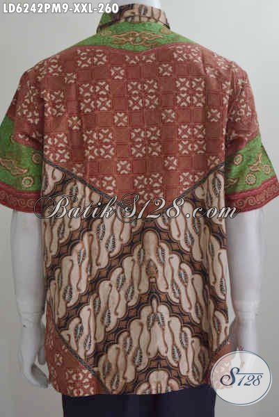 Kemeja Batik Elegan Model Lengan Pendek, Pakaian Batik Halus Istimewa Buatan Solo, Produk Busana Batik Modis Trend 2017 Bahan Halus Proses Kombinasi Tulis Ukuran 3L Untuk Cowok Gemuk [LD6242PM-XXL]