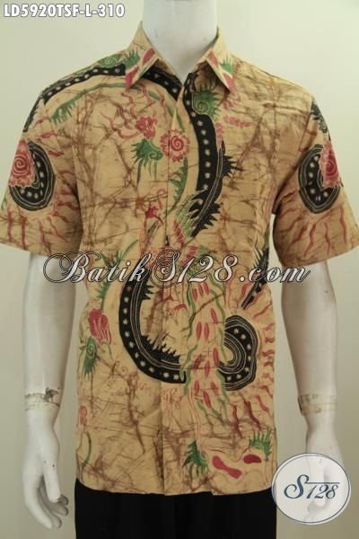 Kemeja Batik Elegan Model Lengan Pendek Size L, Pakaian Batik Halus Motif Gaul Proses Tulis Soga Daleman Pake Furing Lebih Mewah Dan Istimewa [LD5920TSF-L]