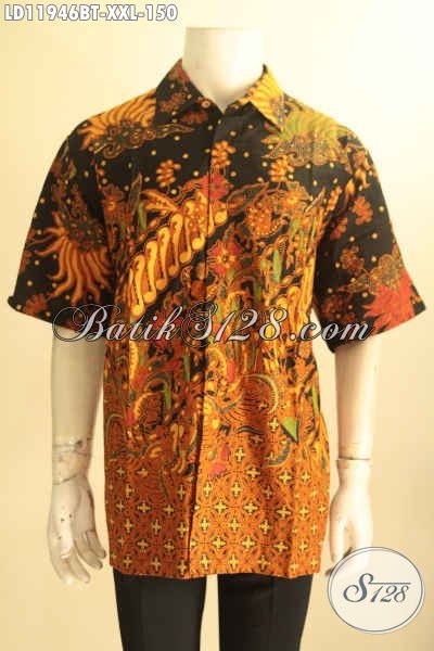 Kemeja Batik Elegan Model Lengan Pendek Spesial untuk Pria Gemuk, Baju Batik Kombinasi Tulis Motif Elegan Klasik, Pas Untuk Acara Resmi Maupun Ngantor [LD11946BT-XXL]