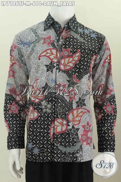 Kemeja Batik Elegan Motif Daun Talas, Pakaian Batik Premium Lengan Panjang Full Furing Harga 610K Spesial Buat Pria Sukses [LP7186TF-M]