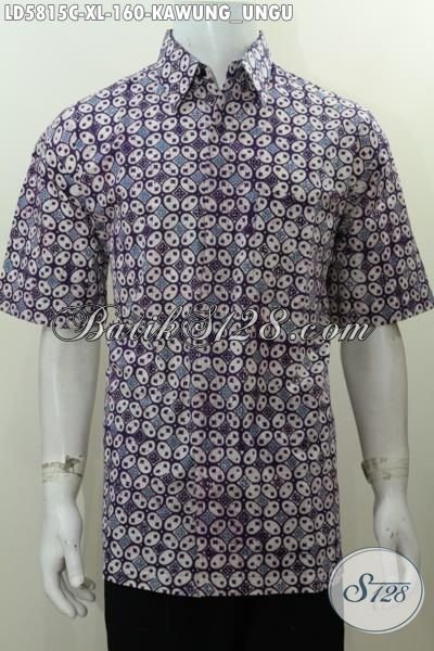 Kemeja Batik Elegan Motif Kawung Warna Ungu, Baju batik Halus Proses Cap Asli Buatan Solo Untuk Lelaki Dewasa Tampil Gagah Dan Trendy [LD5815C-XL]