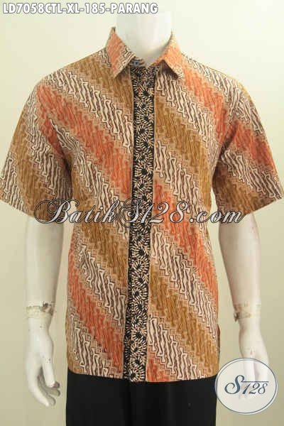 Kemeja Batik Elegan Motif Parang Buatan Solo, Produk Pakaian Batik Istimewa Untuk Pria Dewasa Bahan Halus Proses Cap Tulis Lasem Bikin Penampilan Makin Tampan Maksimal [LD7058CTL-XL]