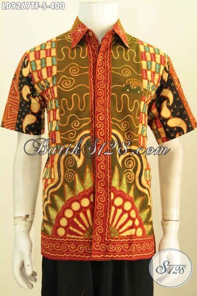 Kemeja Batik Elegan Pria Muda, Batik Halus Dan Mewah Lengan Pendek Motif Sinaran Proses Tulis Daleman Full Furing 400K [LD9267TF-S]
