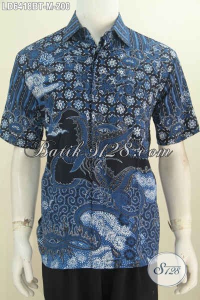 Kemeja Batik Elegan Size M, Busana Batik Biru Motif Klasik Berbahan Halus Proses Kombinasi Tulis Bikin Pria Terlihat Mempesona [LD6418BT-M]