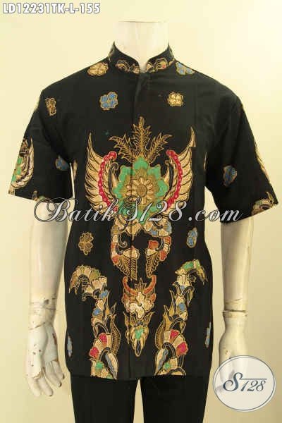 Kemeja Batik Elegan Warna Hitam Motif Bagus Jenis Tulis, Busana Batik Solo Aslil Model Kerah Hanghai Nan Berkelas, Pria Tampil Lebih Gagah Dan Trendy [LD12231TK-L]
