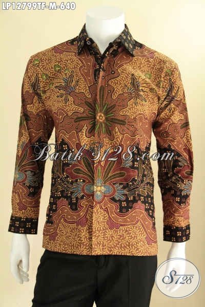 Kemeja Batik Formal Model Lengan Panjang Motif Mewah Proses Tulis, Busana Batik Solo Asli Desain Berkelas Pakai Furing, Bikin Penampilan Lebih Percaya Diri [LP12799TF-M]