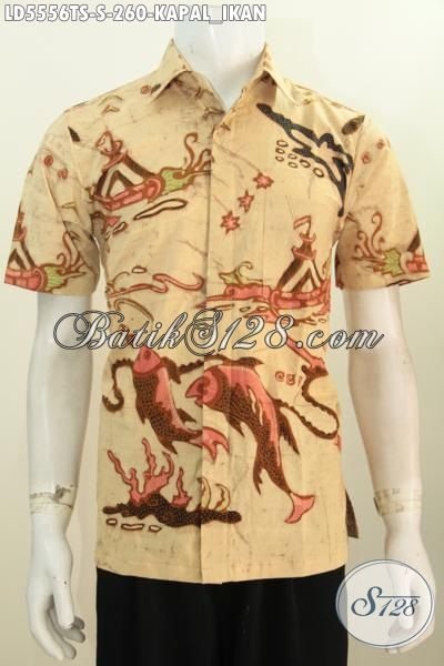 Kemeja Batik Halus Motif Kapal Ikan, Produk Pakaian Batik Terbaru Berbahan Halus Proses Tulis Soga Model Lengan Pendek Untuk Kerja Dan Santai [LD5556TS-S]
