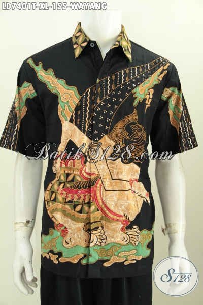 Kemeja Batik Halus Ukuran XL, Pakaian Batik Trend Masa Kini Motif Wayang Semar Bahan Halus Model Lengan Pendek Harga 100 Ribuan Proses Tulis Asli Solo [LD7401T-XL]