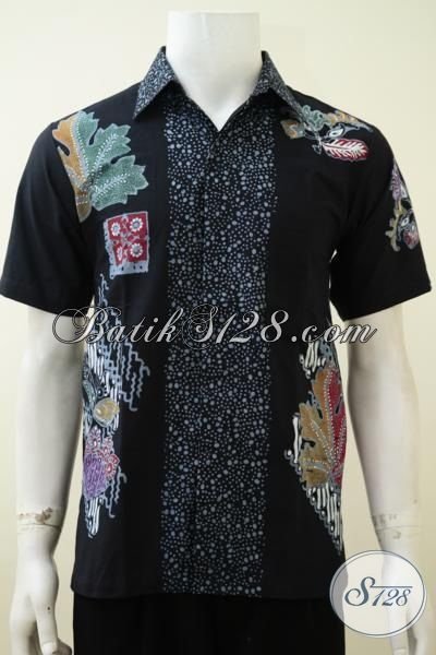 Kemeja Batik Hitam Proses Cap Tulis Dengan Motif Modern Anak Muda Banget, Pakaian Batik Lengan Pendek Cocok Untuk Kerja Dan Pas Buat Kuliah [LD3222CT-S]