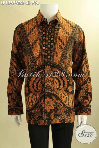 Kemeja Batik Istimewa Khas Eksekutif Model Lengan Panjang Jenis Tulis Soga, Baju Batik Premium Buatan Solo Motif Elegan, Pilihan Terbaik Untuk Penampilan Nan Sempurna [LP12676TSF-XL]