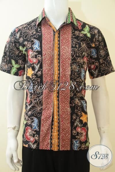 Kemeja Batik Jawa Motif Modern Bunga-Bunga Dasar Hitam, Baju Batik Cap Tulis Lengan Pendek Kwalitas Halus Tampil Elegan [LD3662CT-M]