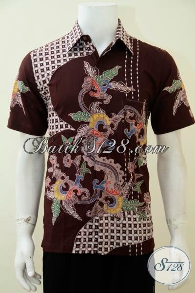 Kemeja Batik Jawa Proses Tulis Berbahan Halus Kwalitas Premium, Baju Batik Coklat Lengan Pendek Motif Unik Bisa Untuk Kerja [LD2848T-S]