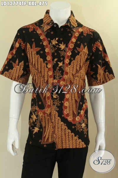 Kemeja Batik Jumbo Lengan Pendek Istimewa Jenis Tulis Kwalitas Premium, Busana Batik Mewah Full Furing Spesial Untuk Lelaki Gemuk Hanya 400 Ribuan Saja [LD12774TF-XXL]