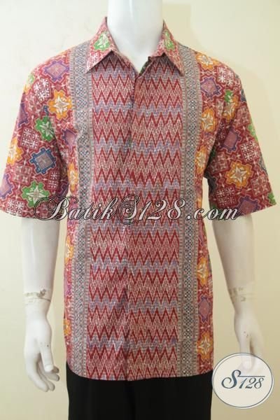 Kemeja Batik Jumbo Untuk Cowok Gemuk, Pakaian Batik Berbahan Halus Cap Tulis, Batik Rangrang Kombinasi Motif Unik, Pas Juga Untuk Hangouts [LD4164CT-XXL]