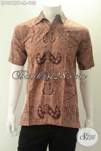 Kemeja Batik Keren Buatan Solo Asli, Baju Batik Pria Model Lengan Pendek Halus Motif Kekinian Jenis Print, Menunjang Penampilan Lebih Gaya [LD13127P-M]