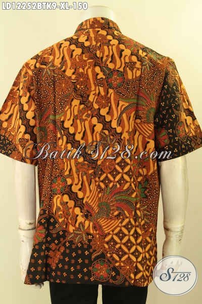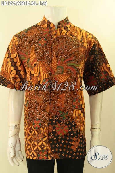 Kemeja Batik Kerja Kerah Shanghai, Baju Batik Koko Lengan Pendek Motif Elegan Klasik Kombinasi Tulis, Pilihan Tepat Untuk Tampil Berkelas [LD12252BTK-XL]