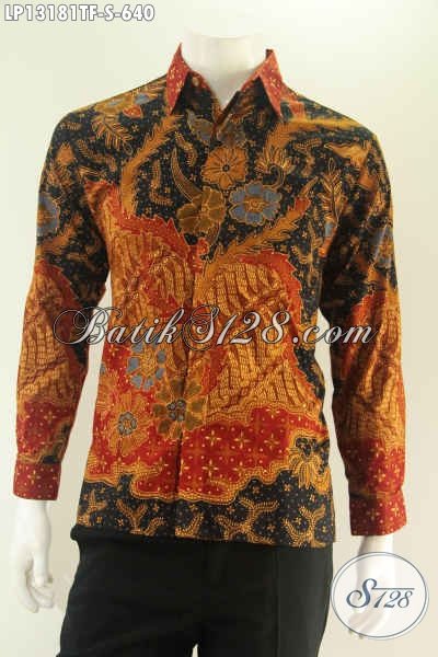 Kemeja Batik Kerja Lengan Panjang Bahan Halus Motif Elegan Proses Tulis, Baju Batik Pria Kekinian Yang Menunjang Penampilan Gagah Berwibawa Daleman Full Furing [LP13181TF-S]