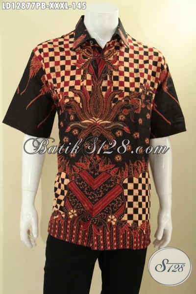 Kemeja Batik Kerja Modern Pria Gemuk Lengan Pendek Motif Keren Kwalitas Istimewa Bahan Halus Yang Nyaman Di Pakai, Bisa Juga Untuk Ke Kondangan Dan Acara Resmi Lainnya [LD12877PB-XXXL]